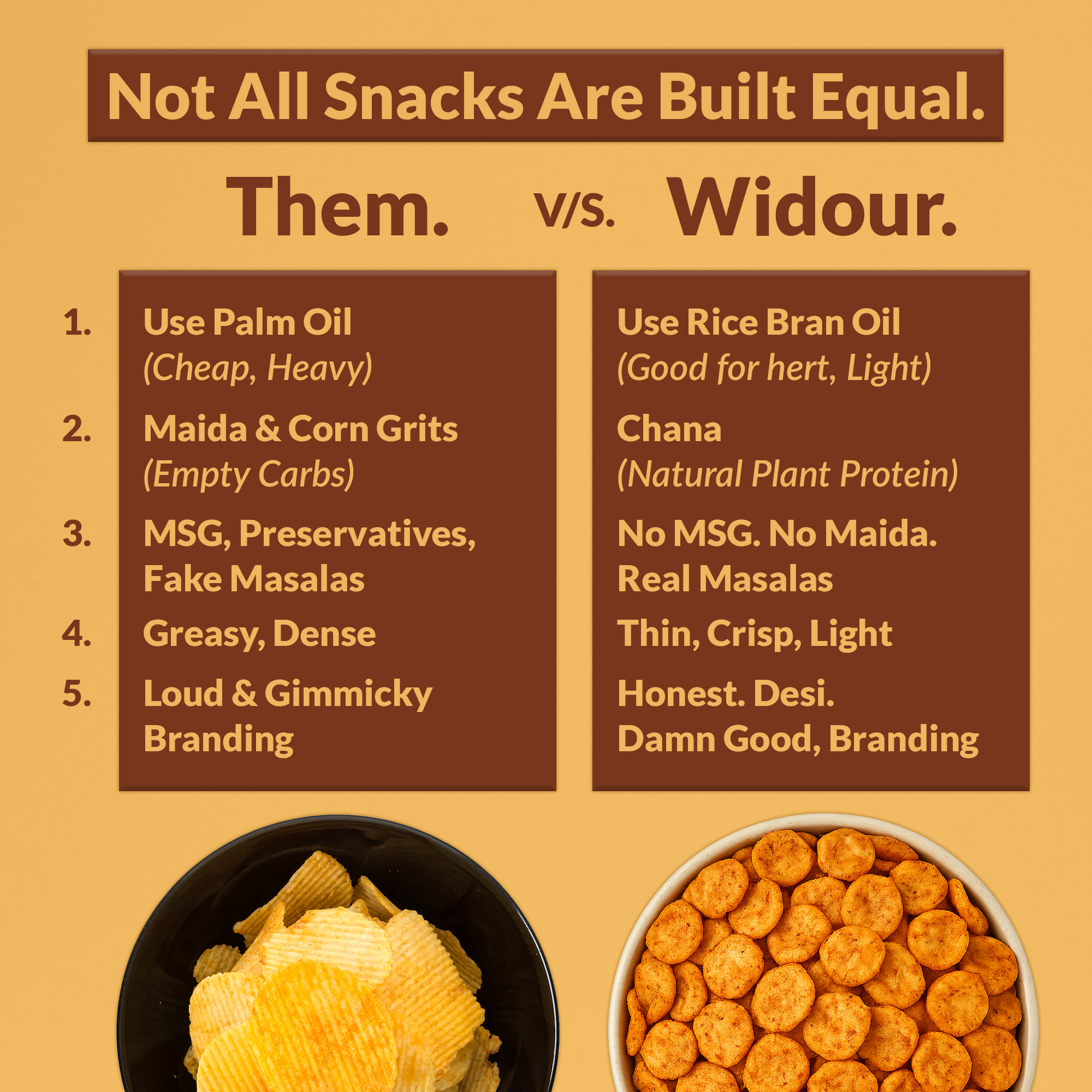 Widour makes snacks that are simple, honest, and addictive in the best way. Chapta Chatpata is proof that Indian namkeen can be tasty and clean-label.