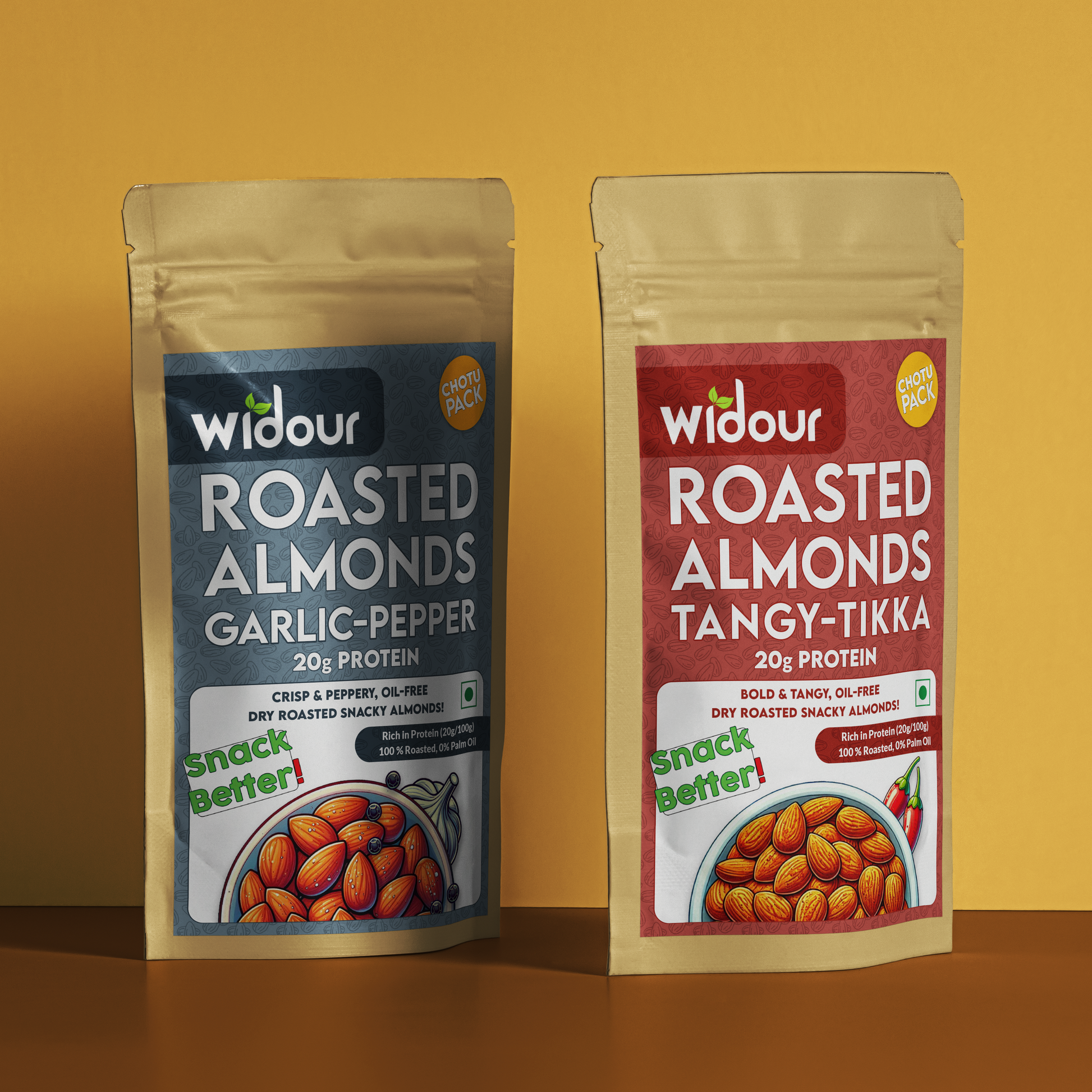 Meet your go-to snack partners: Tangy Tikka Roasted Almonds and Garlic Pepper Roasted Almonds — two bold flavors, roasted to perfection. This combo brings together smoky garlic heat and spicy tikka tang, delivering taste without the junk.