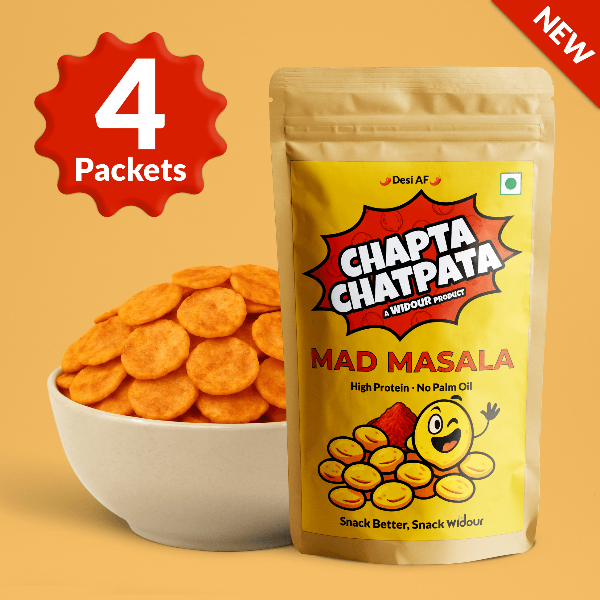 Widour Chapta Chatpata – Crushed Chickpea Snack Mad Masala | No Palm Oil. (Pack of 4)