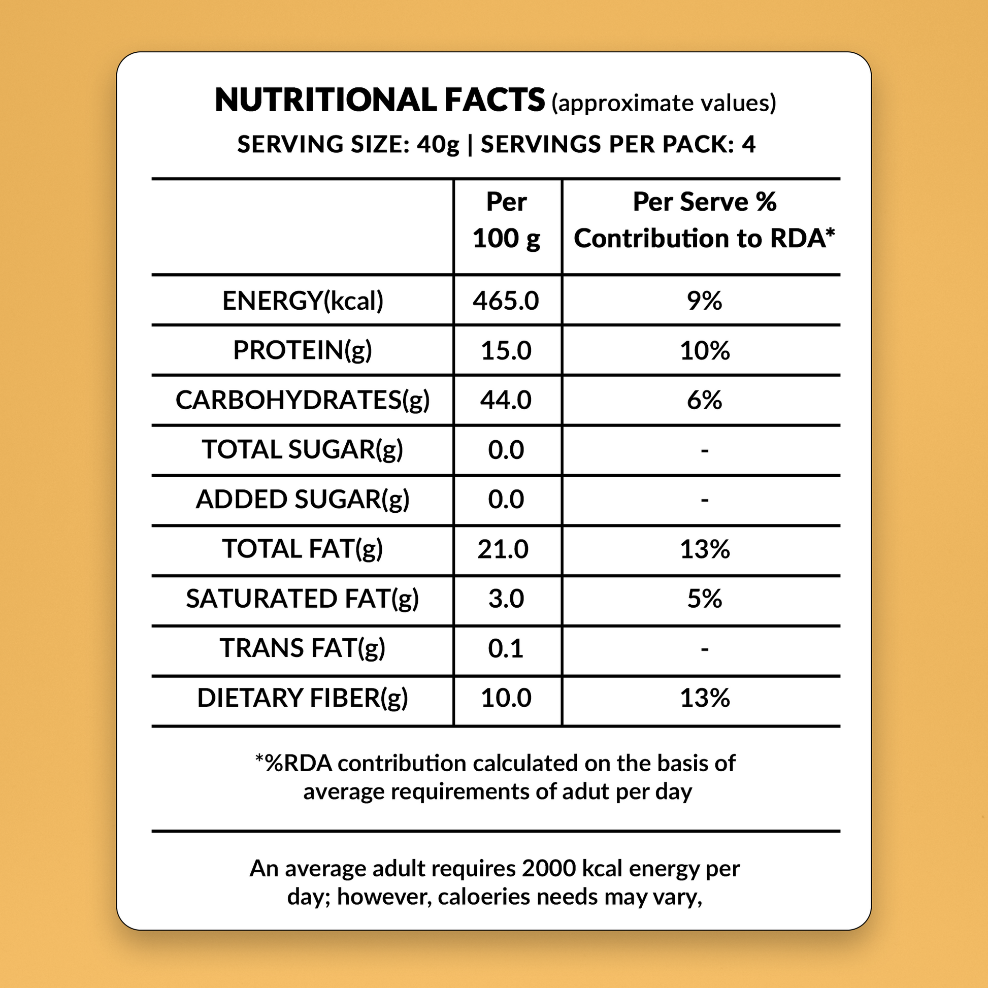 • No Transfat, No Preservatives