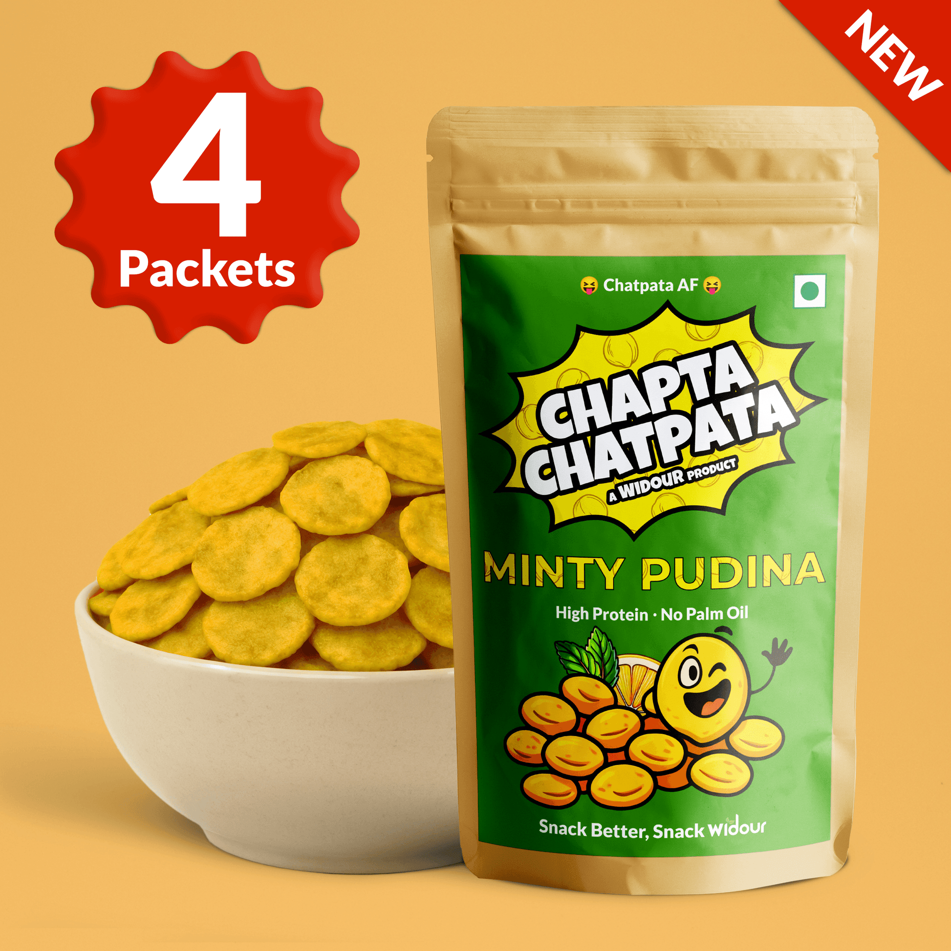 Widour Chapta Chatpata – Crushed Chickpea Snack Minty Pudina | No Palm Oil. (Pack of 4)